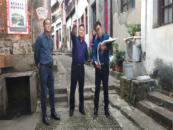 10月26日,集团党委书记、董事长洪筱明,在集团常务副总、国资公司执行董事方亮,集团项目部、综合办和国资公司有关人员的陪同下,来到渔梁就老街风貌整治提升项目进行实地调研。
